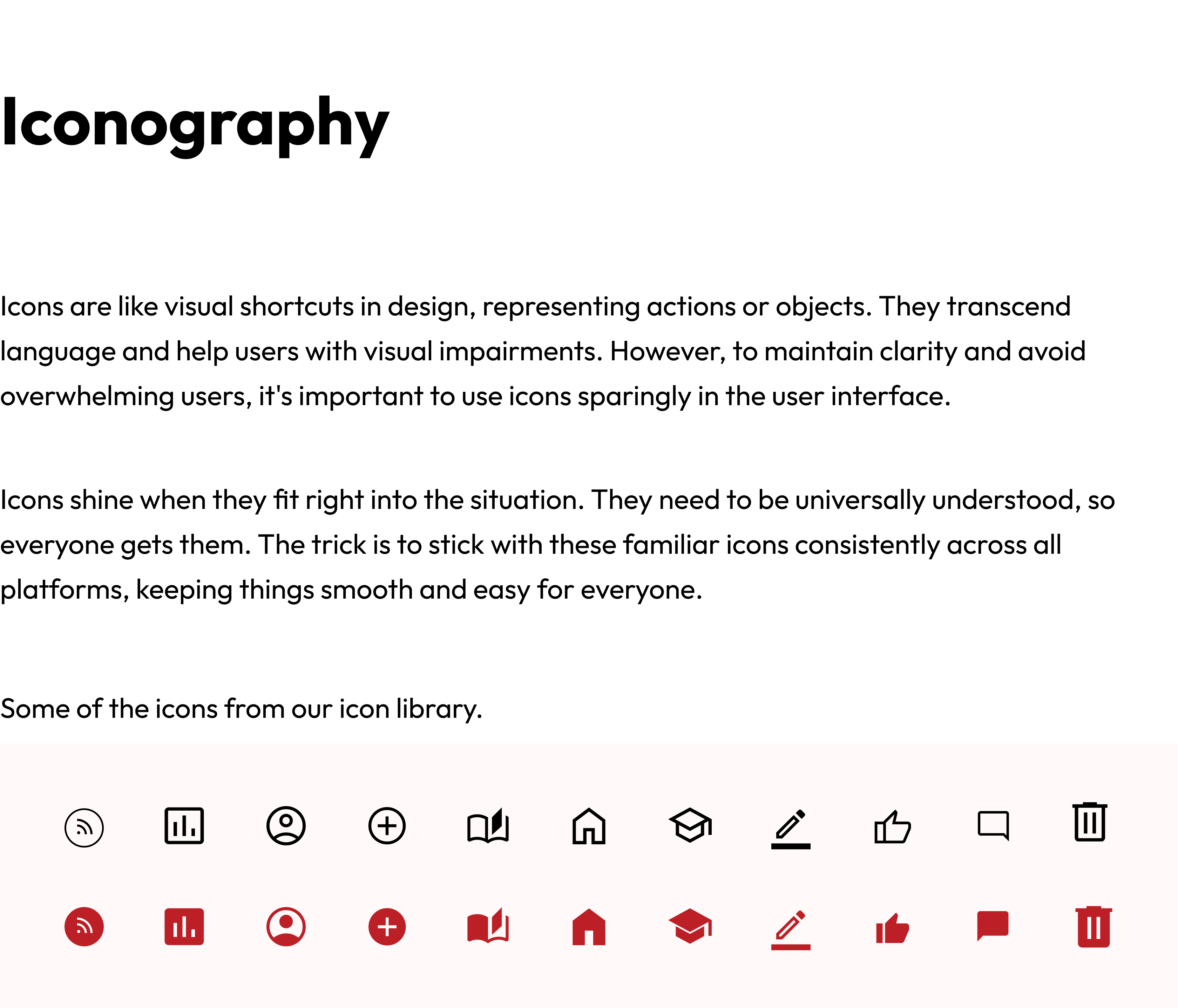 Icons shine when they fit right into the situation. They need to be universally understood, so everyone gets them. The trick is to stick with these familiar icons consistently across all platforms, keeping things smooth and easy for everyone.