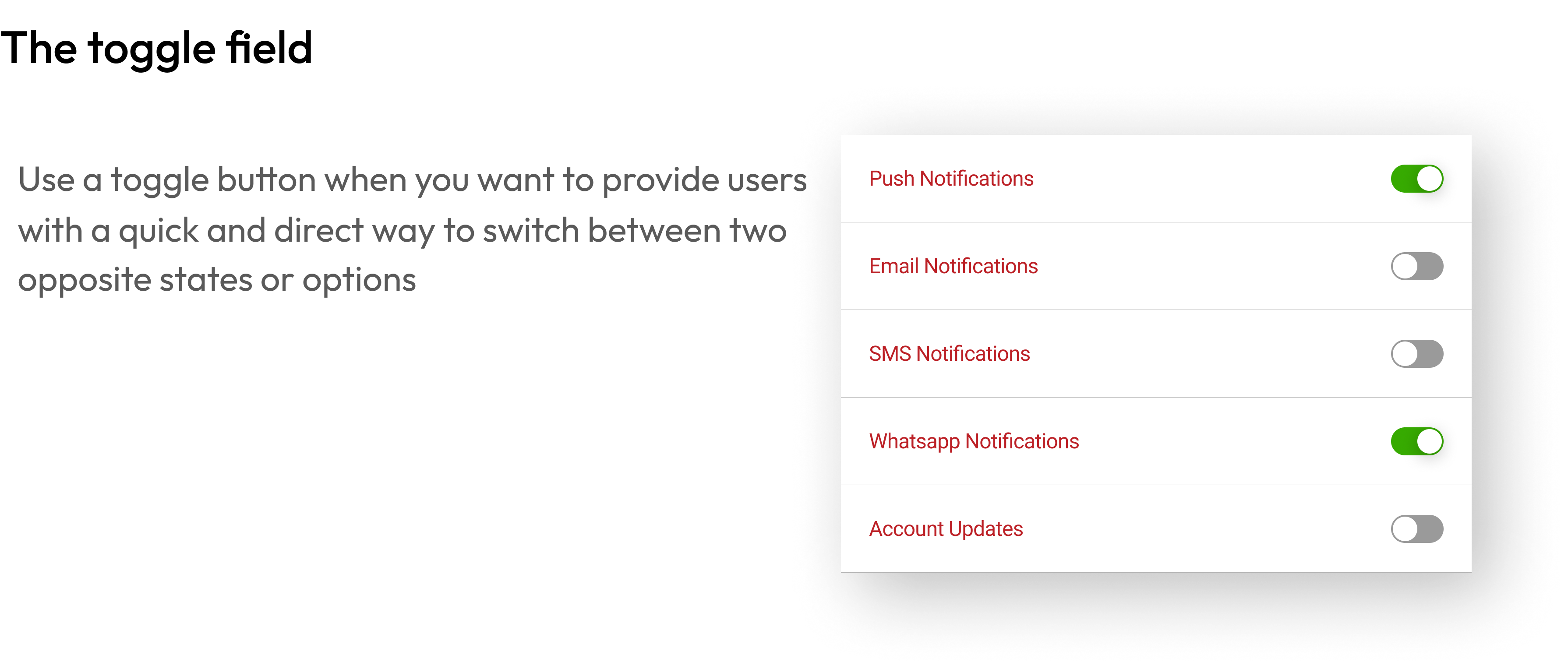 Use a toggle button when you want to provide users with a quick and direct way to switch between two opposite states or options