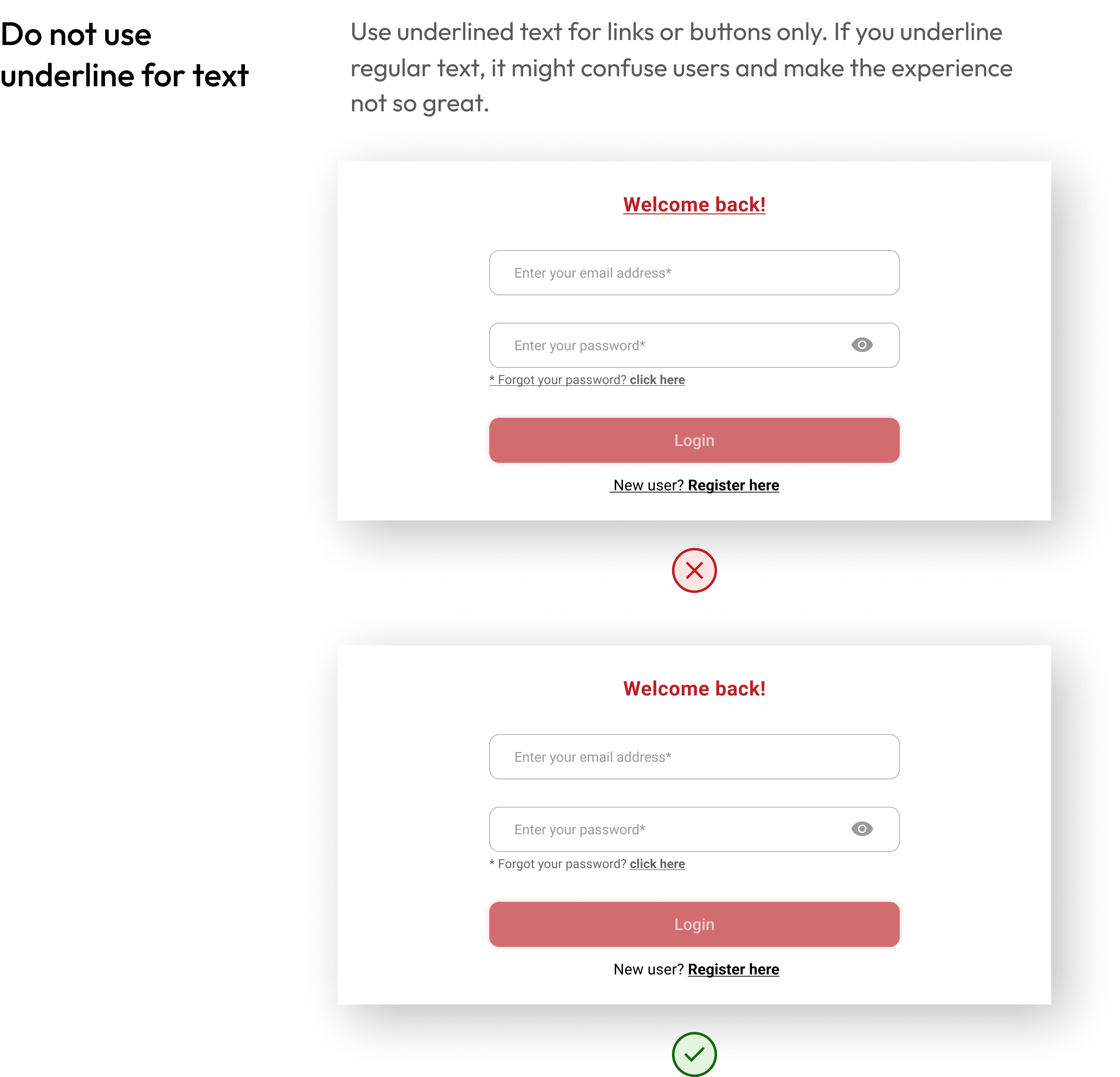 Use underlined text for links or buttons only. If you underline regular text, it might confuse users and make the experience not so great.