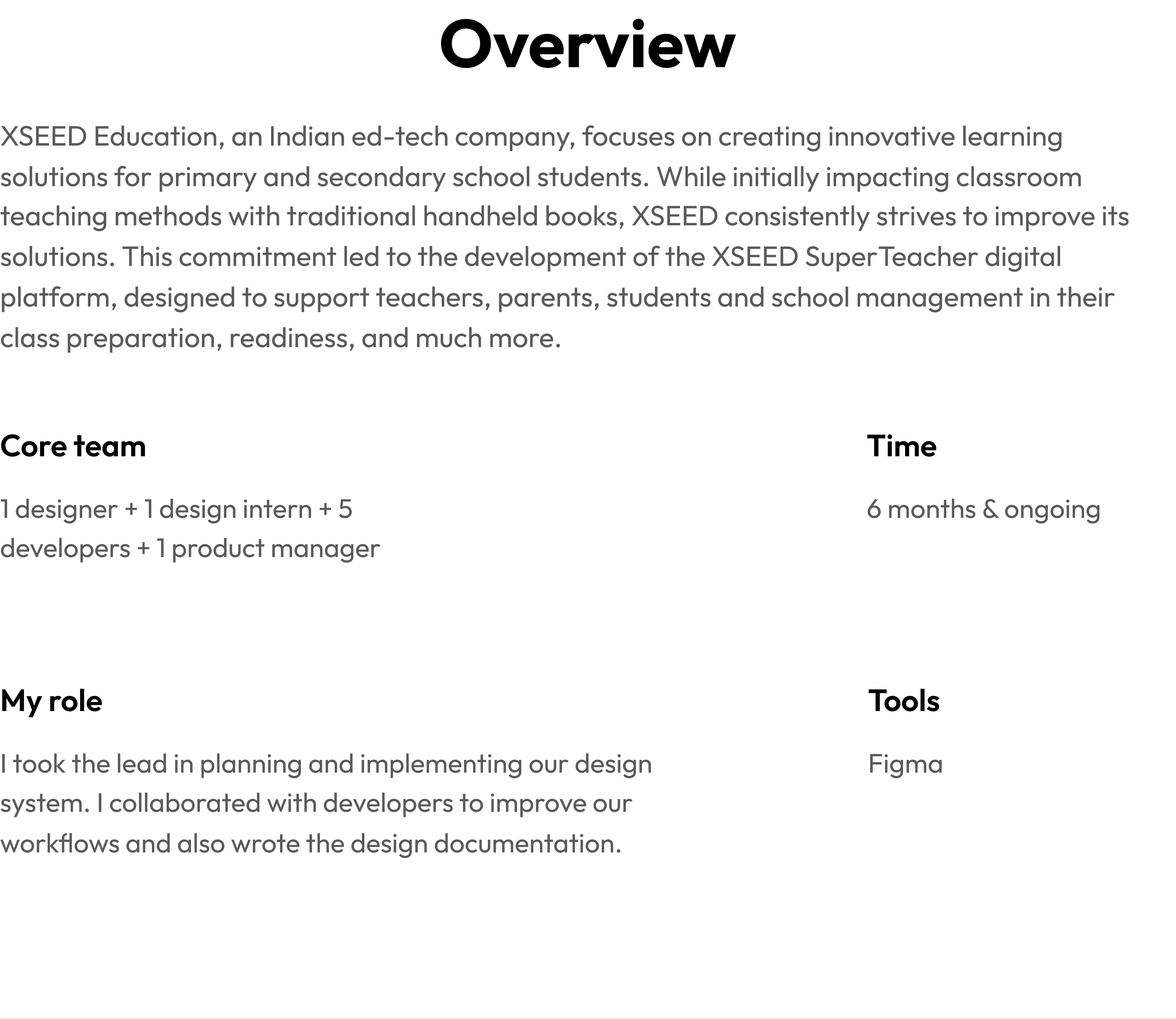 I took the lead in planning and implementing our design system. I collaborated with developers to improve our workflows and also wrote the design documentation.