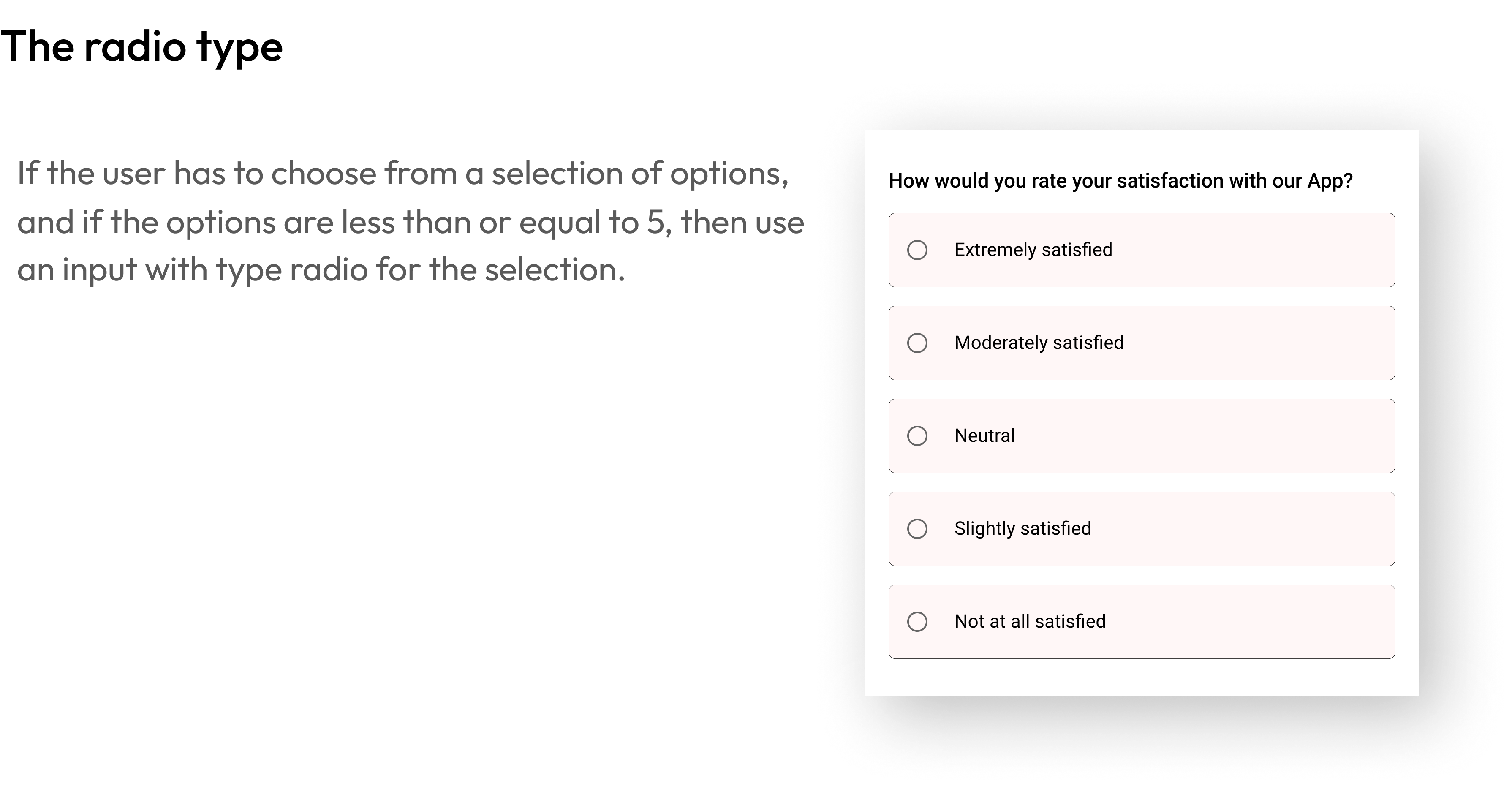 If the user has to choose from a selection of options, and if the options are less than or equal to 5, then use an input with type radio for the selection.