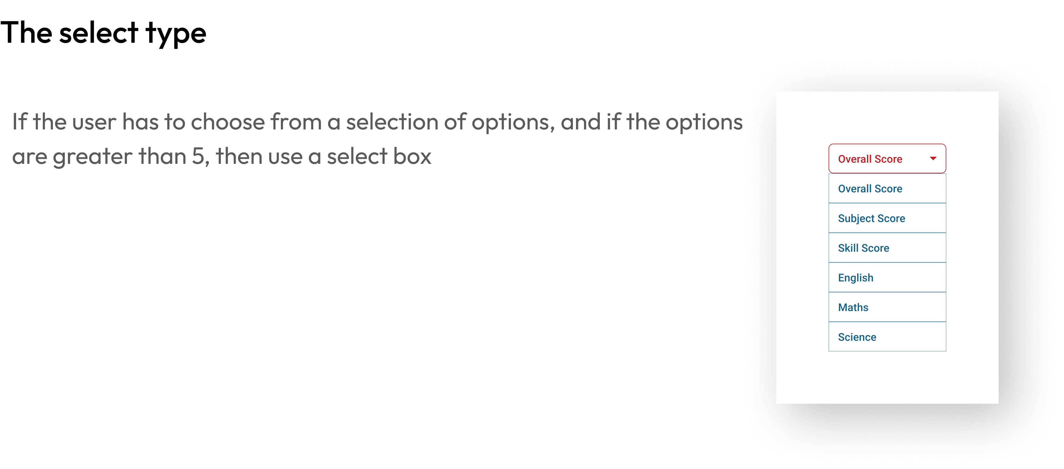If the user has to choose from a selection of options, and if the options are greater than 5, then use a select box