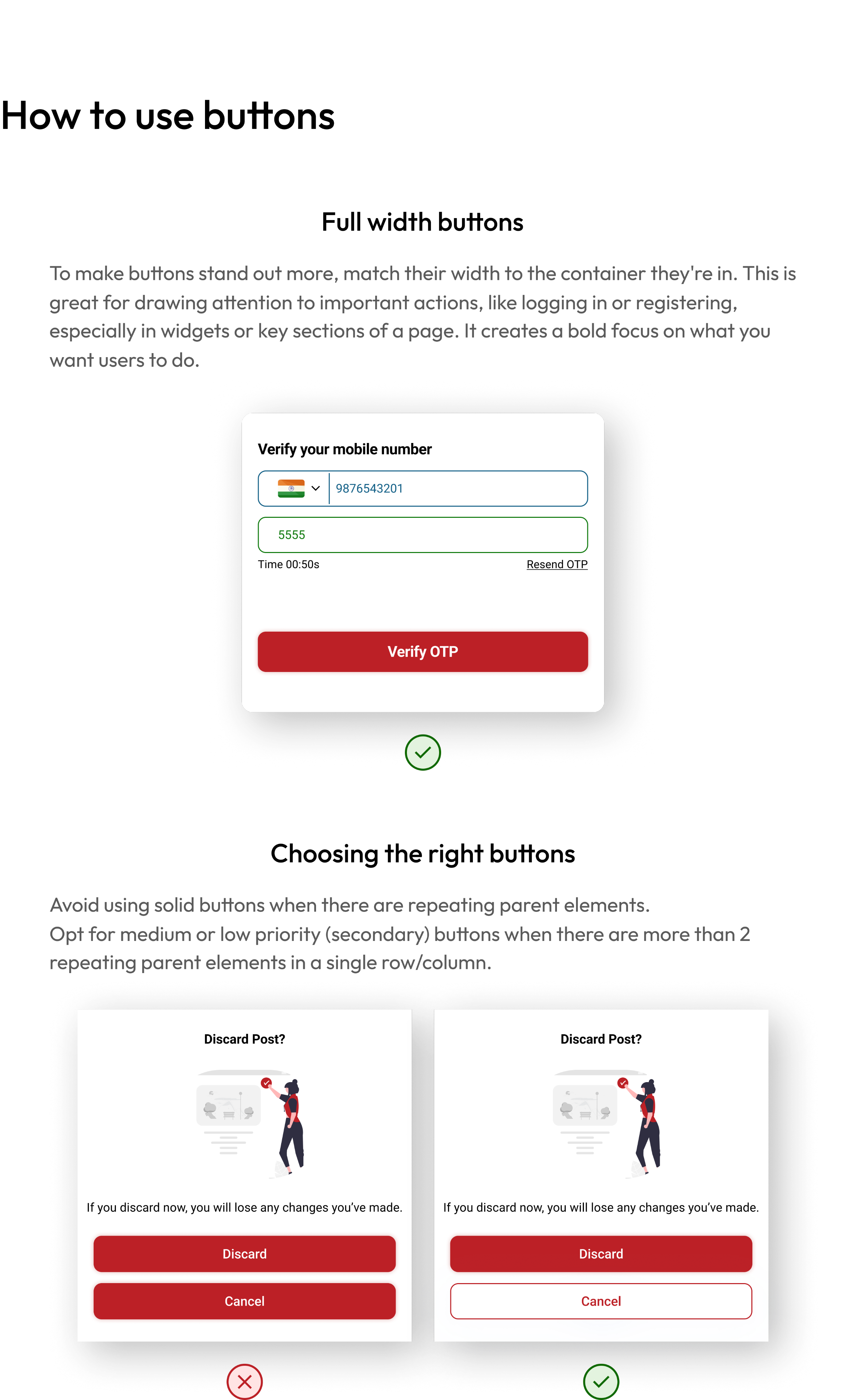 Buttons in both websites and mobile apps act like magic doors – tap or click them, and things happen! They're essential for helping you smoothly navigate and get things done. By sticking to some guidelines, we make sure these buttons work seamlessly, whether you're on a website or using a mobile app.