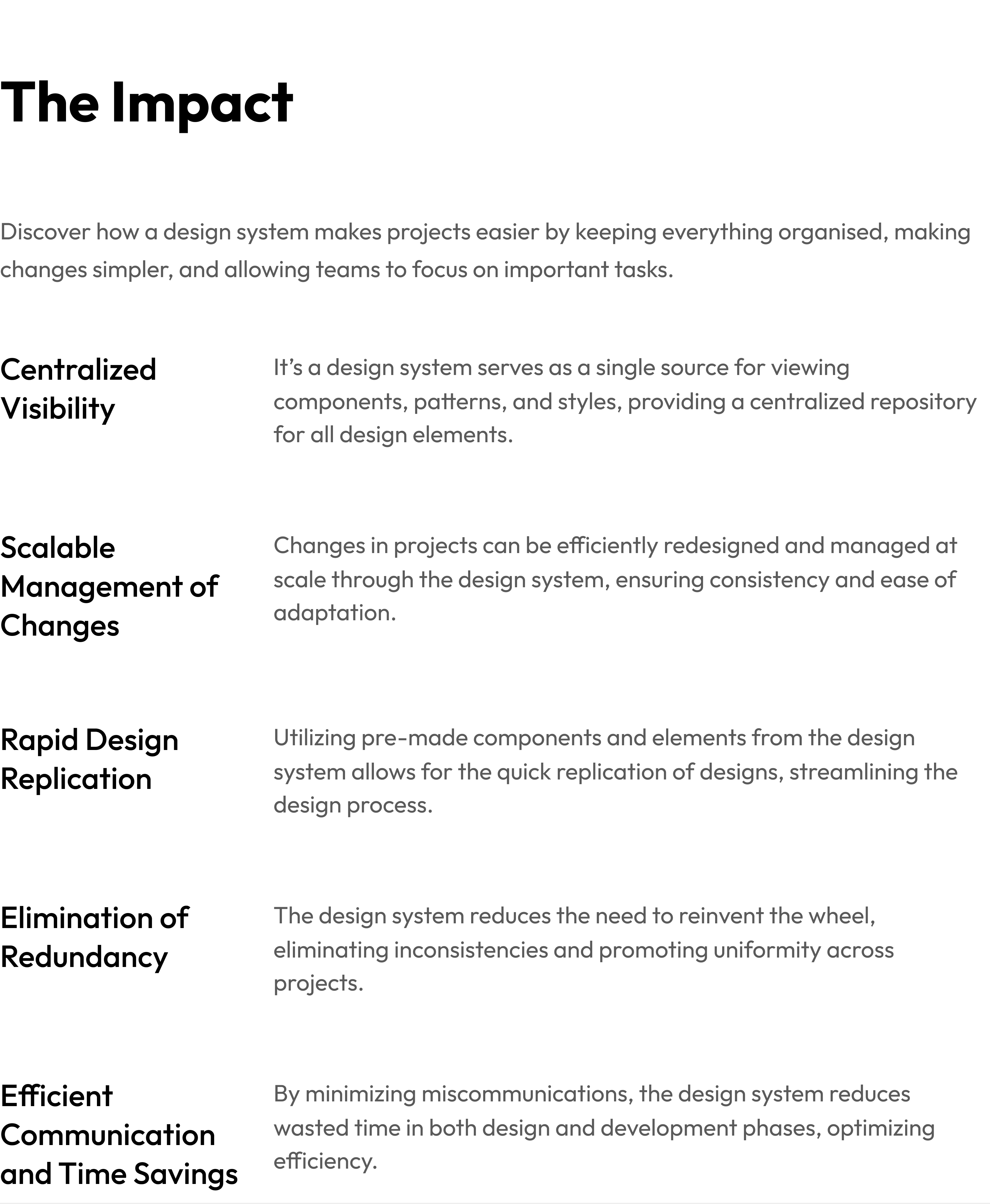 By minimizing miscommunications, the design system reduces wasted time in both design and development phases, optimizing efficiency.