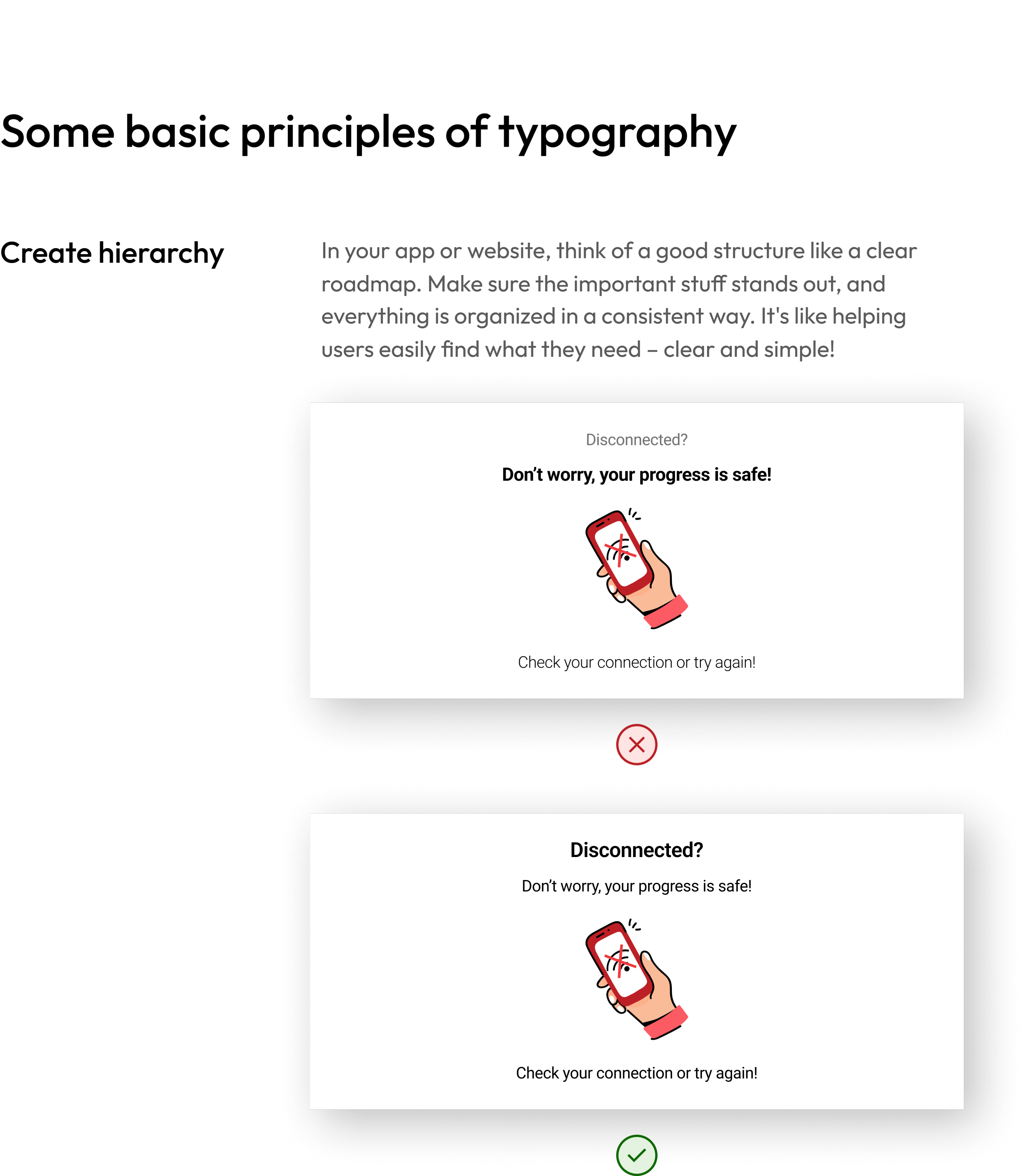 In your app or website, think of a good structure like a clear roadmap. Make sure the important stuff stands out, and everything is organized in a consistent way. It's like helping users easily find what they need – clear and simple!
